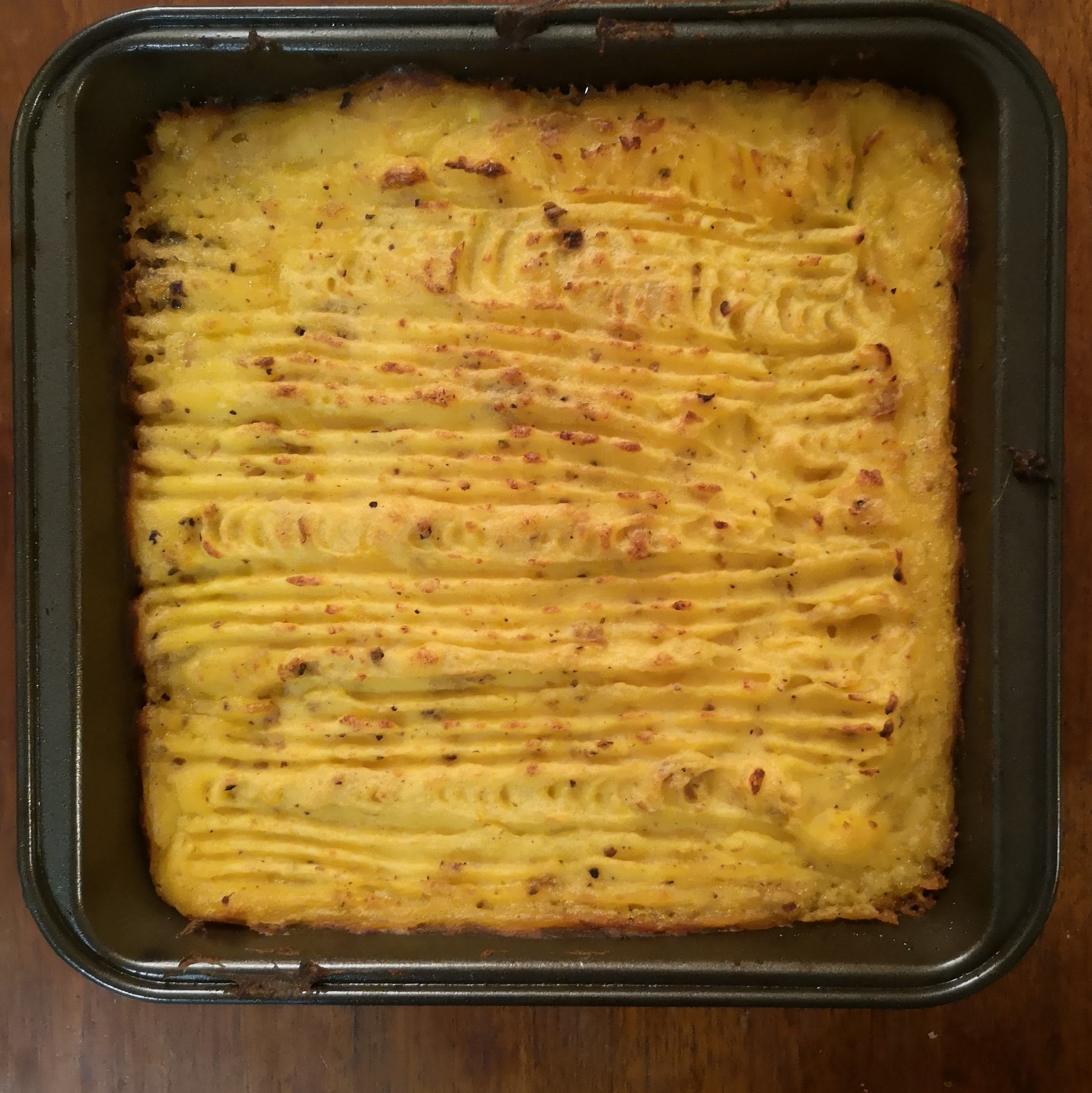 For TOYWLA (those of you who like acronyms), HNTSP is Haggis, Neeps & Tatties Shepherd’s Pie. And it’s exactly what you think it is. Yep, the haggis stands in for the lamb mince, then the neeps (that’s a swede for you English folk) and tatties get pulverised with obscene quantities of butter and black pepper, transforming into a savoury golden topping when baked.