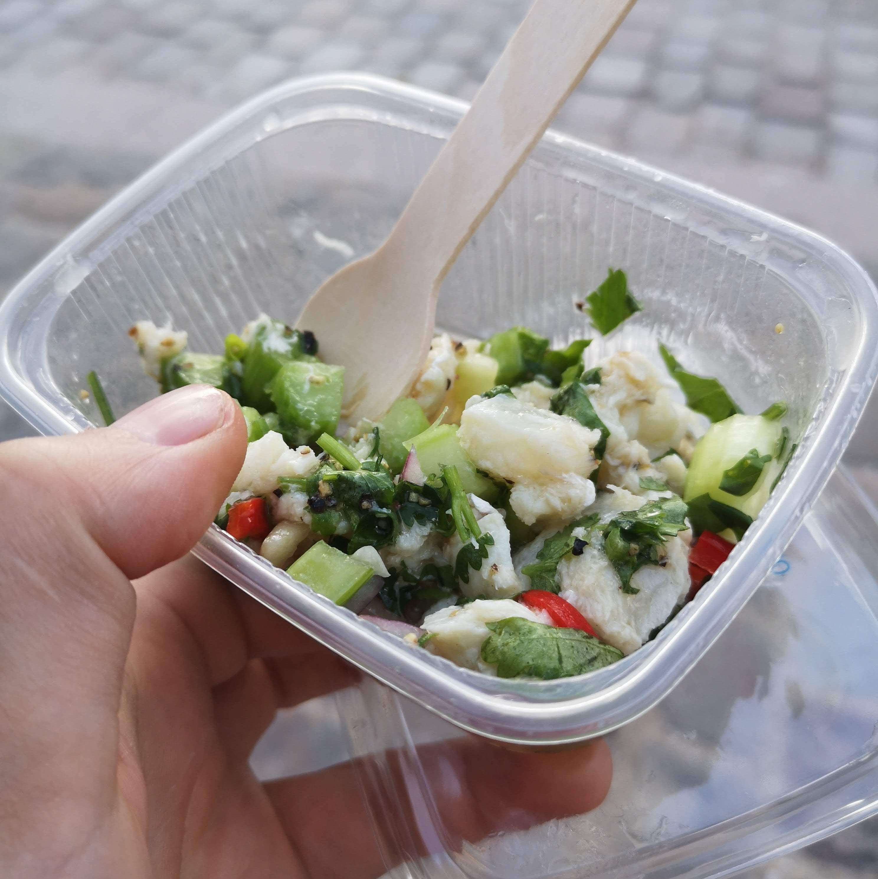 We decided our last day in Denmark should include going to the butterfly house in the Botanic Gardens, which was a lovely thing to do before our flight home in the late afternoon. Although some of the butterflies resembled the pick-n-mix from the night before, we refrained from eating any of them, saving ourselves for the treat to come: a trip around Torvehallerne KBH, Copenhagen’s indoor, glass-encased equivalent of Borough Market. This was actually more like being a kid in a candy shop for me than the pick-n-mix experience the day before, as there was just so much spectacular produce – meat, fish, charcuterie, cheese, and lobsters in tanks – to ogle at. My pal recommended we try the fiskefrikadeller; dense, fried fishcakes around the size of an ice hockey puck, hot and golden from the fryer. Alongside one of those, I also bought 100g of zingy haddock ceviche, which was delicious (though slightly expensive) as a chaser, plus some short-date semi-hard cheese to bring home for a sandwich or two.
